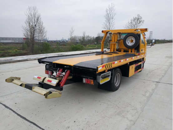 一體板:3噸上裝,4噸卷揚,21米鋼絲繩,3噸后拖臂,底板為花紋一體板(可選沖壓板),板長5.2米,雙側聯(lián)動操作,配四根捆綁帶,**小車一套,L型抱胎架一對,工具箱一個,LED工作照明燈一對,其余標配。